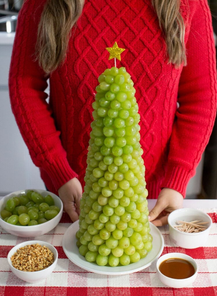 Whether you call it a fruit Christmas tree, an edible Christmas tree, or a grape Christmas tree, this little showstopper always steals the spotlight. This Christmas dessert is so easy to make and always gets the biggest reactions. People genuinely LOVE it!